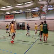 Traditionell trafen sich ehemalige und aktuelle ESSV Basketballer*innen zum Jahresabschlussturnier in der Turnhalle. Während die „Alten“ mit tollen Aktionen unterm Korb immer noch zu beeindrucken wussten, nutzte der Nachwuchs das Turnier als kleinen Härtetest für die „Jugend trainiert für Olympia“ Stadt- und Schulamtsfinals. Für letzteres hatten sich zum Jahresende sowohl die WKII weiblich, als auch die WKIII männlich mit Siegen gegen die Aktivschule und das Hannah-Arendt-Gymnasium qualifiziert. Darüber hinaus konnten auch die Jungs der WKII in der Vorrunde glänzen und sich mit einem Sieg gegen das ASG füe das Stadtfinale im Januar qualifizieren. Wir drücken die Daumen für die nächste Runde.