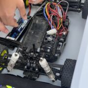 Bereits beim Aufbau des Rennens am Donnerstagnachmittag kamen SchülerInnen und Lehrer unserer Schule an der RS zusammen, um die Rennstrecke vorzubereiten und letzte technische Fragen zu klären. Das technische Equipment für die digitale Rundenmessung brachte der Erfurter Buggy-Club mit, der sich gern für Jugendprojekte solcher Art engagiert. Und dann war alles für den Renntag vorbereitet. Am Freitagmorgen standen alle ProjektschülerInnen pünktlich bereit und fieberten dem Rennstart entgegen. Nach einer kurzen Belehrung durch den Rennleiter, Herr Knippschild, ging es pünktlich 8 Uhr los. Unsere SchülerInnen arbeiteten, wie schon in der Vorbereitung, in den Arbeitsgruppen „Technik/ Fahrer“ sowie „Design/PR“ und so verging das 3,5-stündige Rennen wie im Fluge. Batteriewechsel und Kleinreparaturen unseres Modellautos betreute zusätzlich Magnus aus der 12. Klasse mit, der durch sein großes Engagement für das 24h-Rennen bestens vorbereitet war. Die 3 Automodelle lagen den gesamten Rennverlauf dicht beieinander, was die Sache um so spannender machte. Also sich unsere Mannschaft schließlich als Sieger absetzen konnte, war die Freude natürlich umso größer. Die Siegerehrung erfolgte im Rahmen der Eröffnungsveranstaltung des „Tages der Zukunft“ der Regelschule. Eine sehr interessante Initiative der RS Stotternheim, bei der Firmen aus Nah und Fern zusammen kommen, um SchülerInnen Perspektiven für die Berufswahl zu vermitteln. Auch wir haben natürlich die Vielfalt der Stände uns nicht entgehen lassen und Kontakte zu einer Firma knüpfen können, die uns bei der Weiterentwicklung und technischen Vertiefung unseres Rennprojektes helfen möchte: