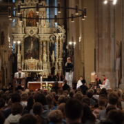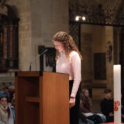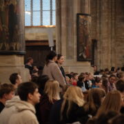 Trotz erneut widriger Wetterbedingungen fand, zum diesjährigen Patrozinium von Edith Stein, im Dom der traditionelle Gottesdienst mit der gesamten Schulgemeinschaft statt. Unter der Leitung von Generalvikar Dominik Trost, sowie unserer Schulseelsorgerin Christiane Henning-Schönemann wurde unserer Namenspatronin gedacht, wobei Passagen ihres Lebens und Wirkens vorgelesen oder durch die DuG AG vorgespielt wurden. Schüler- und Lehrerchor sowie Orchester sorgten für die passende musikalische Untermalung des Gottesdienstes.
